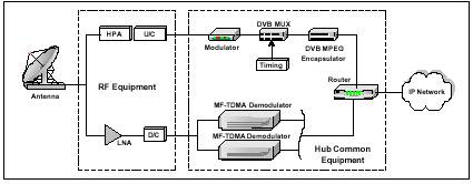 (typically 6 meters in diameter), transmit and receive RF equipment, as well as transmit and receive Hub Common Equipment (HCE).